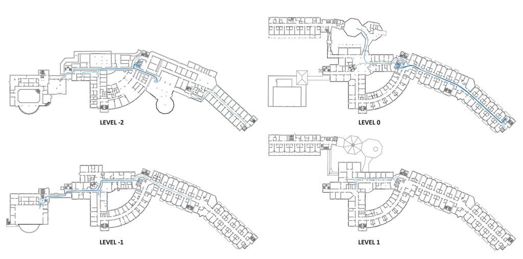 Empirically, the work involved 12 consecutive hours spent with each of 70 stroke inpatients during an “ordinary” rehabilitation day. Interactions with the built environment were documented through mapped routes and activity locations on floor plans, time logs, textual fieldnotes, patients’ remarks, and quick on-the-go prompts, sometimes complemented by simple sketches. For privacy reasons, observation focused on corridors and communal areas rather than on entering therapy or patient rooms.